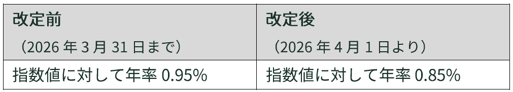 FWD円建一時払変額年金について、運用効果の向上を目的として、2026年4月1日(水)より「指数連動債券の参照指数の計算・公表その他の運営にかかる費用」(※)の引き下げを実施します。