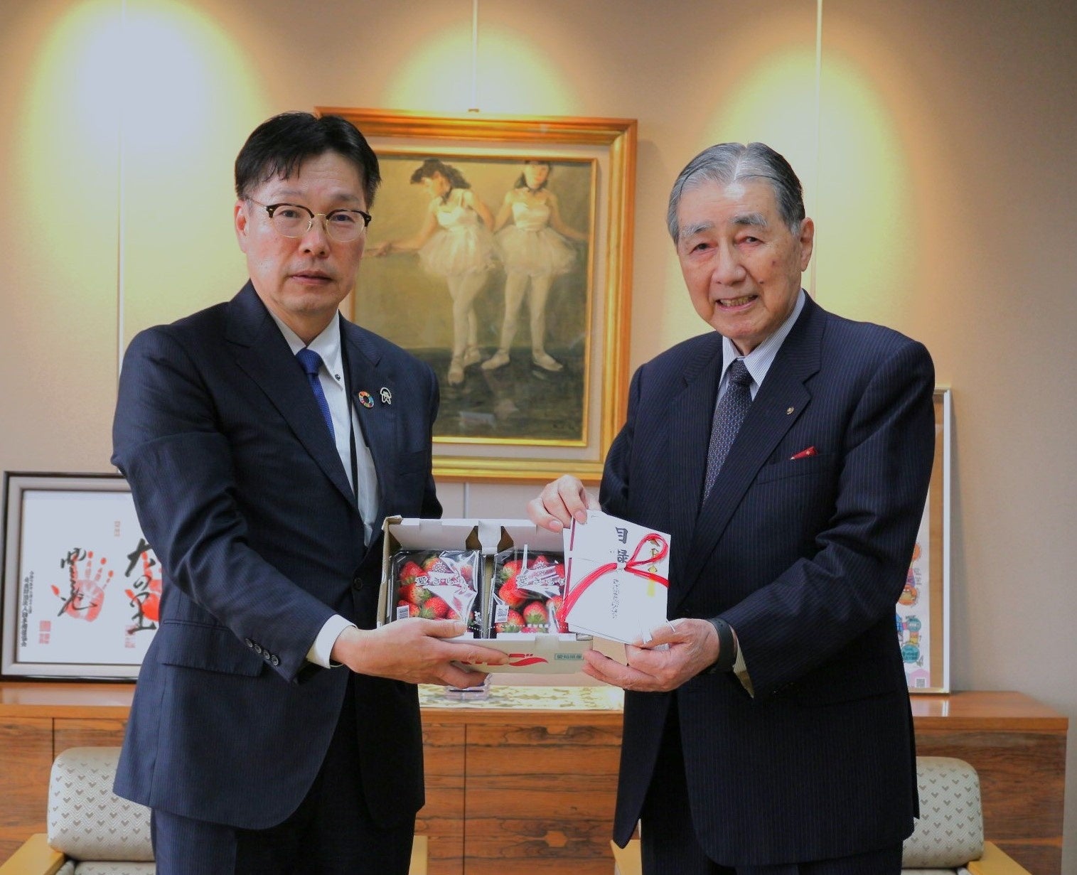 【社会福祉法人中部善意銀行でのいちご寄贈式】