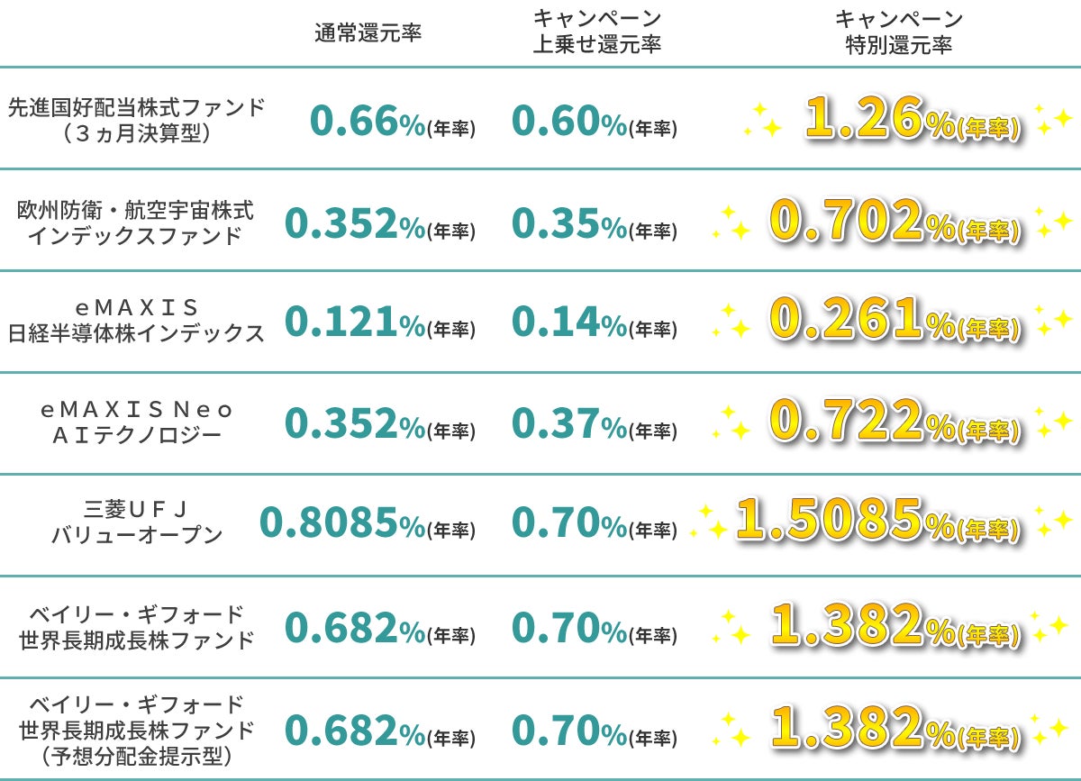 キャンペーン期間中は、対象7銘柄の通常のポイント還元率を大幅にアップします。お得なこの機会に、ぜひキャンペーンのご利用をご検討ください。