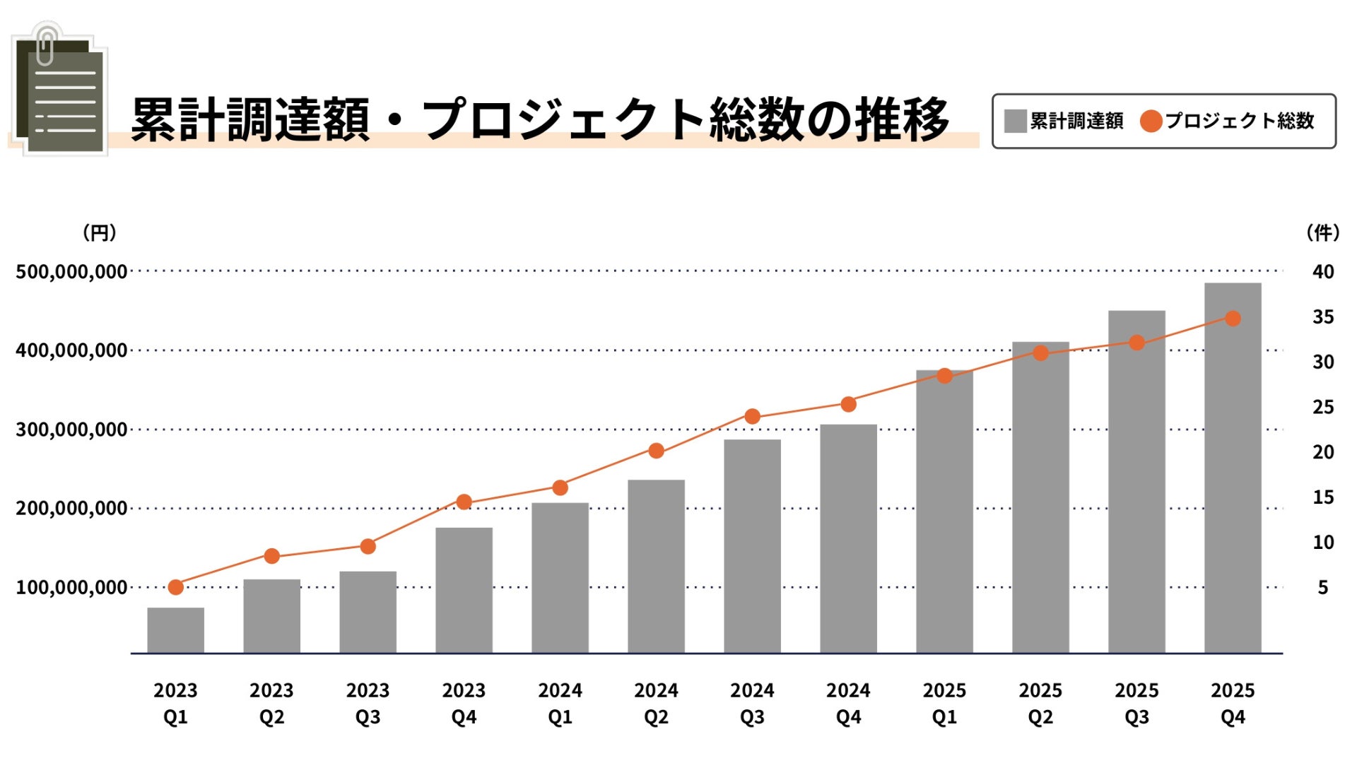 2023年のサービス開始以来、累計調達額やプロジェクト数を着実に積み上げています。
