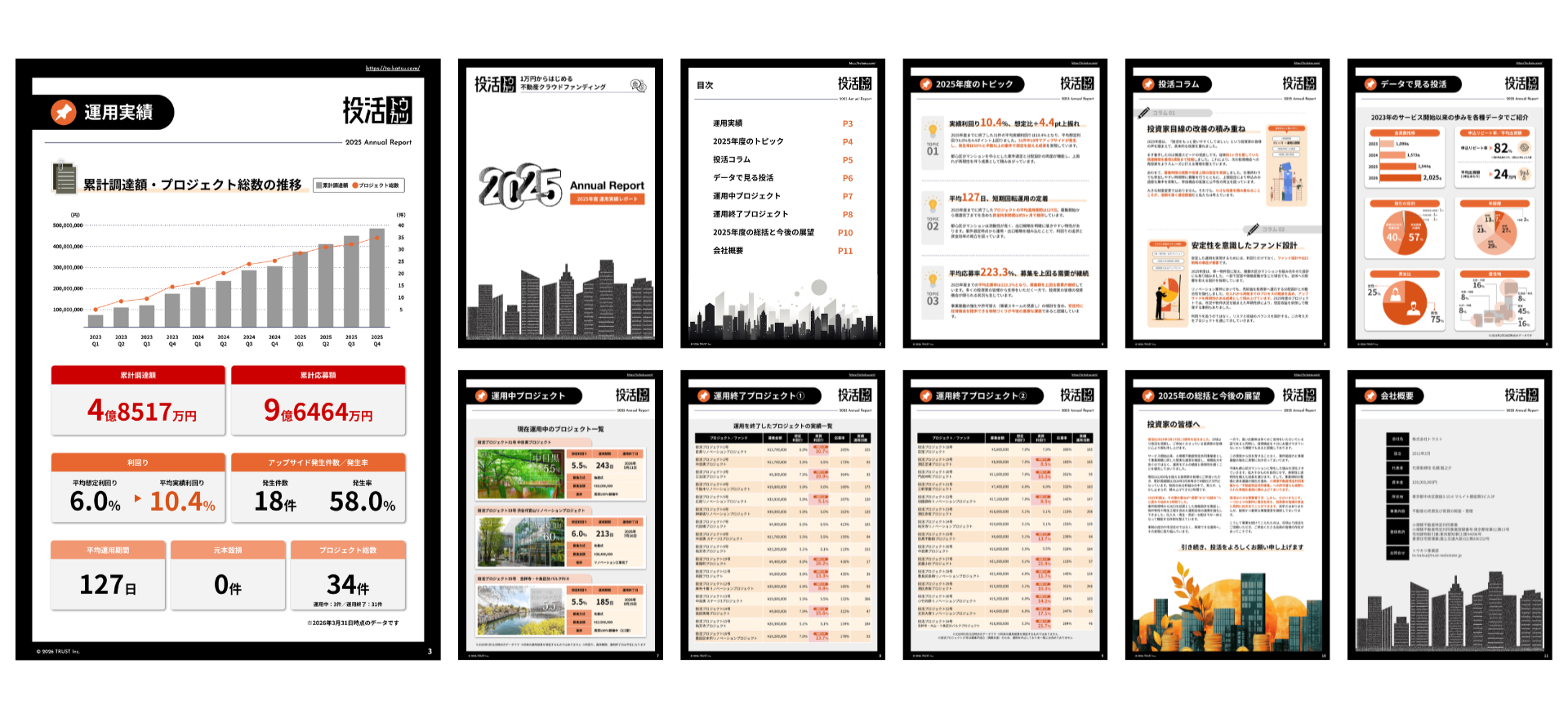 本レポートでは、2025年度までの運用実績に加え、2023年のサービス開始以降の運用データやプロジェクト実績、投資家データなどを整理し、「投活」のこれまでの運用実績とサービスの成長をデータとともに紹介しています。