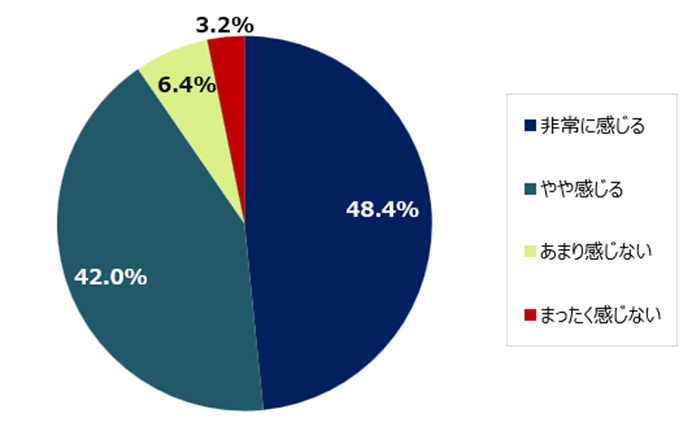 設問:あなたは最近の物価上昇を受けて、家計への負担感をどの程度感じていますか。いちばん近いものを1つお選びください。