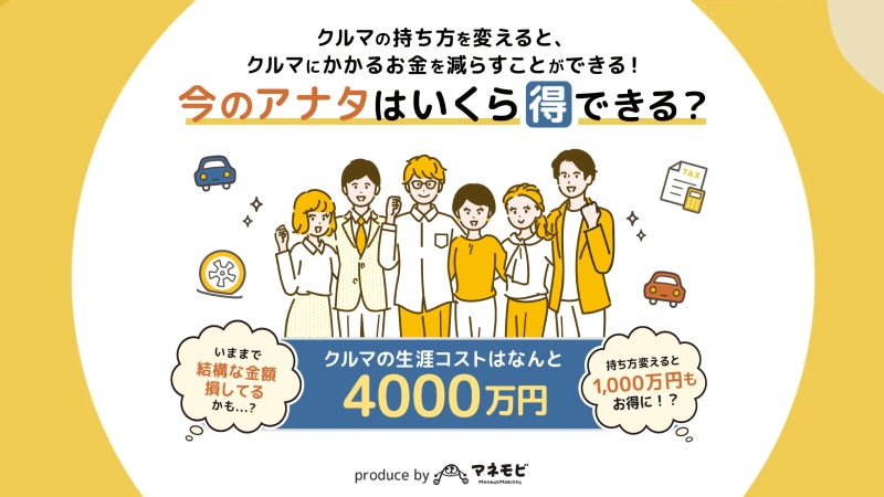 日本における車の生涯コストは約4,000万円にのぼると言われています。新車平均価格が直近5年で1.45倍に高騰するなど、車の維持は家計を圧迫する大きな要因となっています。「マネモビ」は、この巨大な支出を「単なる消費」で終わらせず、家計のキャッシュフローを改善して「資産形成の種銭」へと転換すべく誕生しました。車を「金融資産の一部」として捉え直すことで、将来の不安をワクワクする未来へと変えていく、新しいモビリティライフのスタンダードを提案します。