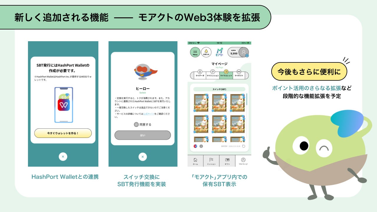 株式会社HashPort(本社:東京都港区、代表取締役CEO:吉田 世博、以下「HashPort」)は、関西電力株式会社(以下「関西電力」)が提供する社会貢献アプリ「モアクト」内にWeb3ウォレット「HashPort Wallet」の機能提供を本日より開始したことをお知らせいたします。