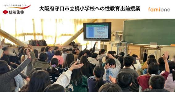 「子どもを願うすべての人によりそい 幸せな人生を歩める社会をつくる」をビジョンに掲げ、法人の従業員向け福利厚生や自治体の住民向け支援を行うヘルスケアサポートサービス「ファミワン」 https://famione.com/benefit/ などを展開する株式会社ファミワン(本社:東京都渋谷区、代表取締役:石川勇介)は、2026年2月に住友生命保険相互会社(本社:大阪府大阪市、取締役 代表執行役社長:高田 幸徳)との協業に関するプロジェクトの一環として、性教育に関する出前授業を、大阪府の守口市立梶小学校でオンライン開催しました。