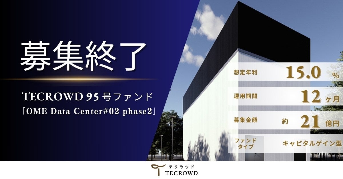 1口10万円から投資ができる不動産クラウドファンディング「TECROWD」の95号ファンド(募集金額約21億円)が募集を終了したことをお知らせいたします。