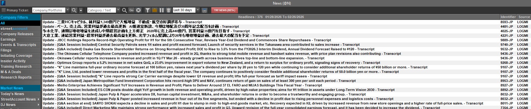 ログミー株式会社(本社:東京都渋谷区、代表取締役:三浦由加里)は、運営する「ログミーFinance」において、上場企業の決算説明会書き起こし英訳のファクトセット(FactSet)提供金融デジタルプラットフォームへの配信を開始しました。
