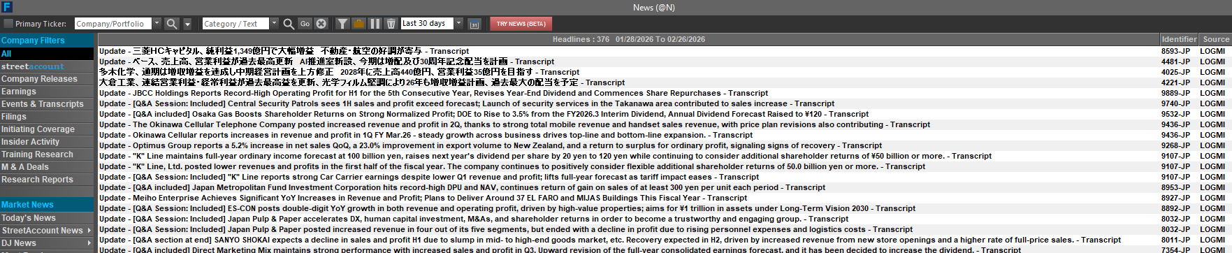 ログミー株式会社(本社:東京都渋谷区、代表取締役:三浦由加里)は、運営する「ログミーFinance」において、上場企業の決算説明会書き起こし英訳のファクトセット(FactSet)提供金融デジタルプラットフォームへの配信を開始しました。