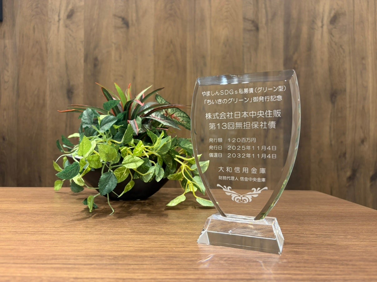日本中央住販、やましんSDGs私募債(グリーン型)「ちいきのグリーン」を発行― 2026年4月13日、大和信用金庫より記念の盾を贈呈 ―