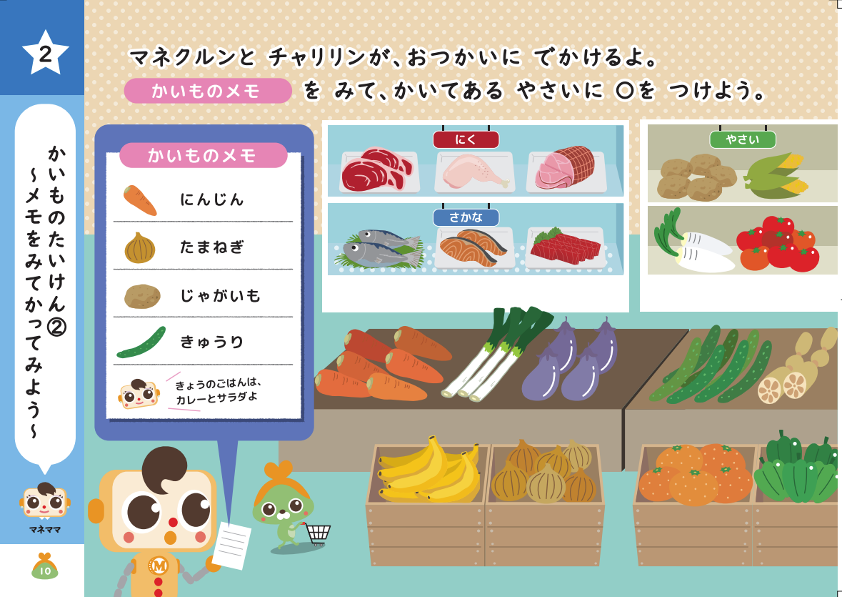 こうした状況を受け、当協会では、これまで全国で展開してきた体験型金融教育イベント「キッズ・マネー・スクール」の知見を凝縮し、未就学児の向けのお金の基本や大切さを学ぶワークブック「おかねドリル」を制作いたしました。