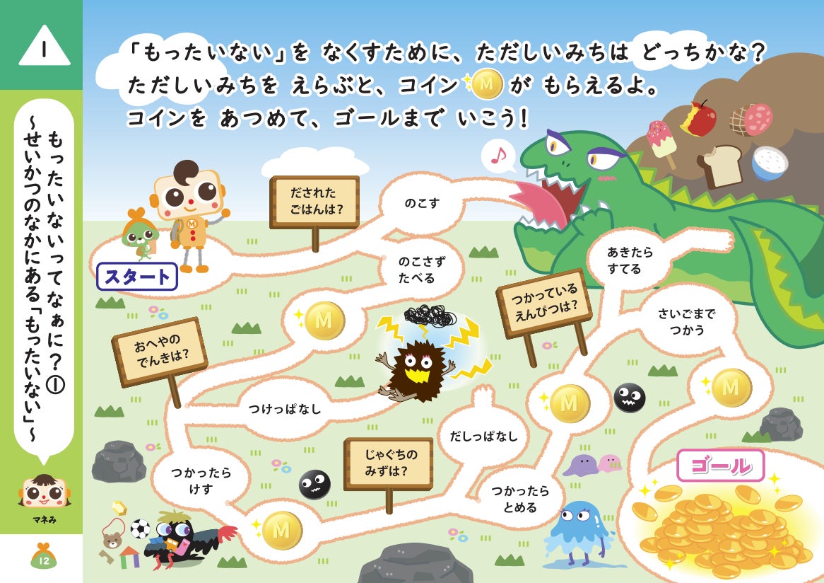 本ワークブックは「キッズ・マネー・スクール」のイベントで体感するお金についての本質的な学びを、家庭で継続して深め、意識を定着させることを目的としています。単なるお金の計算問題ではなく、クイズや迷路などのあそびを通して、「お金の役割や大切さ」「モノを大切にすること=お金を大切にすること」などを学びます。
