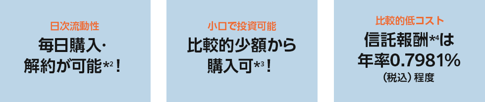 3. 購入時手数料がかからないノーロードタイプです。換金時の信託財産留保額もかかりません。