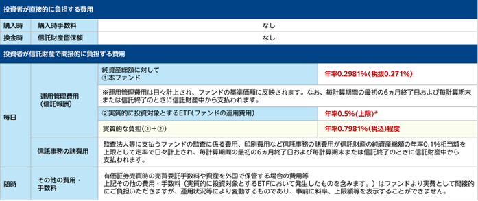 ⋆4 ファンドの信託報酬(税込年率0.2981%)に投資対象ETFの運営費用(年率0.5%(上限))を加えた実質的な負担。