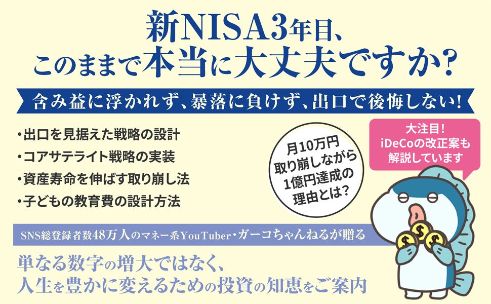 株式会社KADOKAWA(本社:東京都千代田区、取締役 代表執行役社長 CEO:夏野剛)は、マネー系YouTuber・ガーコ氏による最新刊『新NISA投資のアップデート 毎月10万円受け取りながら億り人になる』を2026年4月16日(木)より発売開始します。投資を「人生を支える道具」へとアップデートさせる、全世代必読のバイブルです。