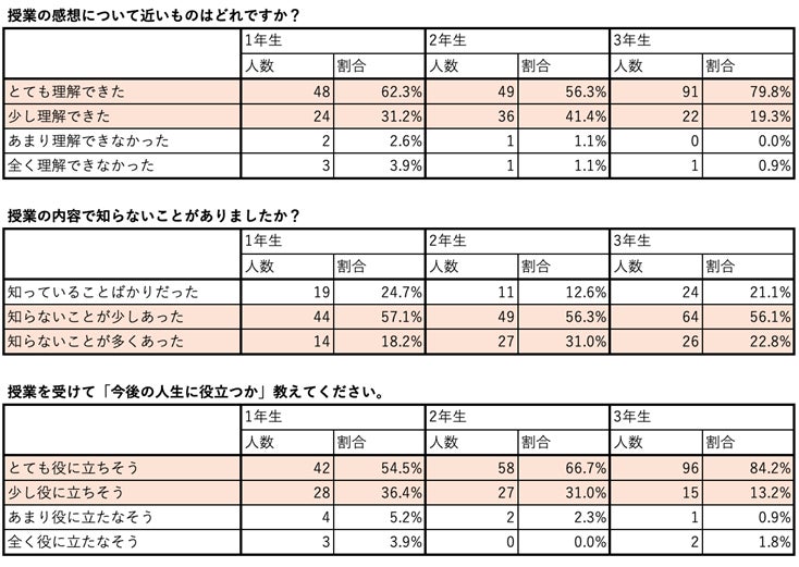 学年別に課題や発達段階に応じて実施いただけて、ありがたかったです。