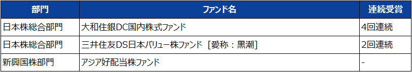 ・2025年12月末時点で、5年以上の運用実績がある投資信託。フレッシャー賞は3年以上の運用実績がある投資信託。