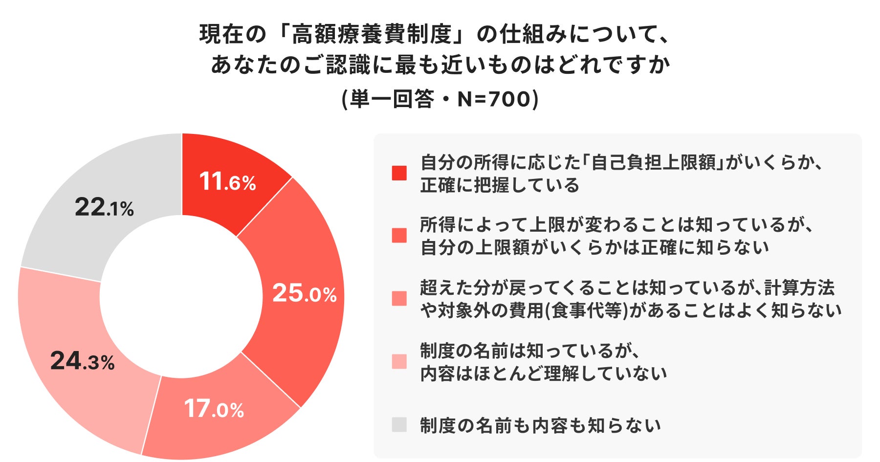 株式会社モニクルフィナンシャル(本社:東京都千代田区、代表取締役CEO:原田慎司)は、当社が運営する、保険の比較・見積サービス『ほけんのコスパ』(https://hokencospa.jp/)の調査企画として、外部調査会社を利用し、20歳以上の男女700名を対象に「高額療養費に関する意識調査」を実施いたしました。