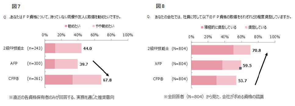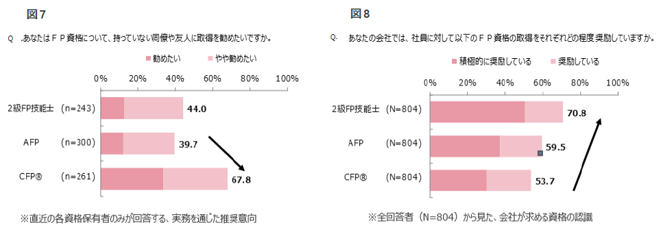■CFP資格の推奨意向は67.8%と突出して高く、2級FP技能士やAFP資格を大きく上回る。(図7)