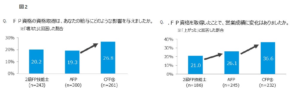 ■CFP資格は、給与や営業成績といった実利の点において、AFP資格や2級FP技能士を大きく上回る。(図2)