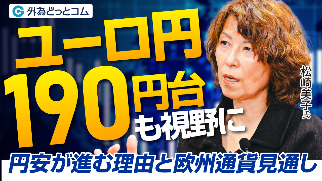 株式会社外為どっとコム(本社:東京都港区、代表取締役社長:竹内 淳)は、ロンドン在住の松崎美子氏をお迎えしたインタビュー動画を公開したことをお知らせいたします。中東情勢が欧州経済と通貨に与える影響をはじめ、円安が加速する理由、ユーロ円190円台到達の可能性、ECB・BOEの金融政策、ハンガリー情勢まで、幅広いテーマについて松崎氏のご見解をお届けします。