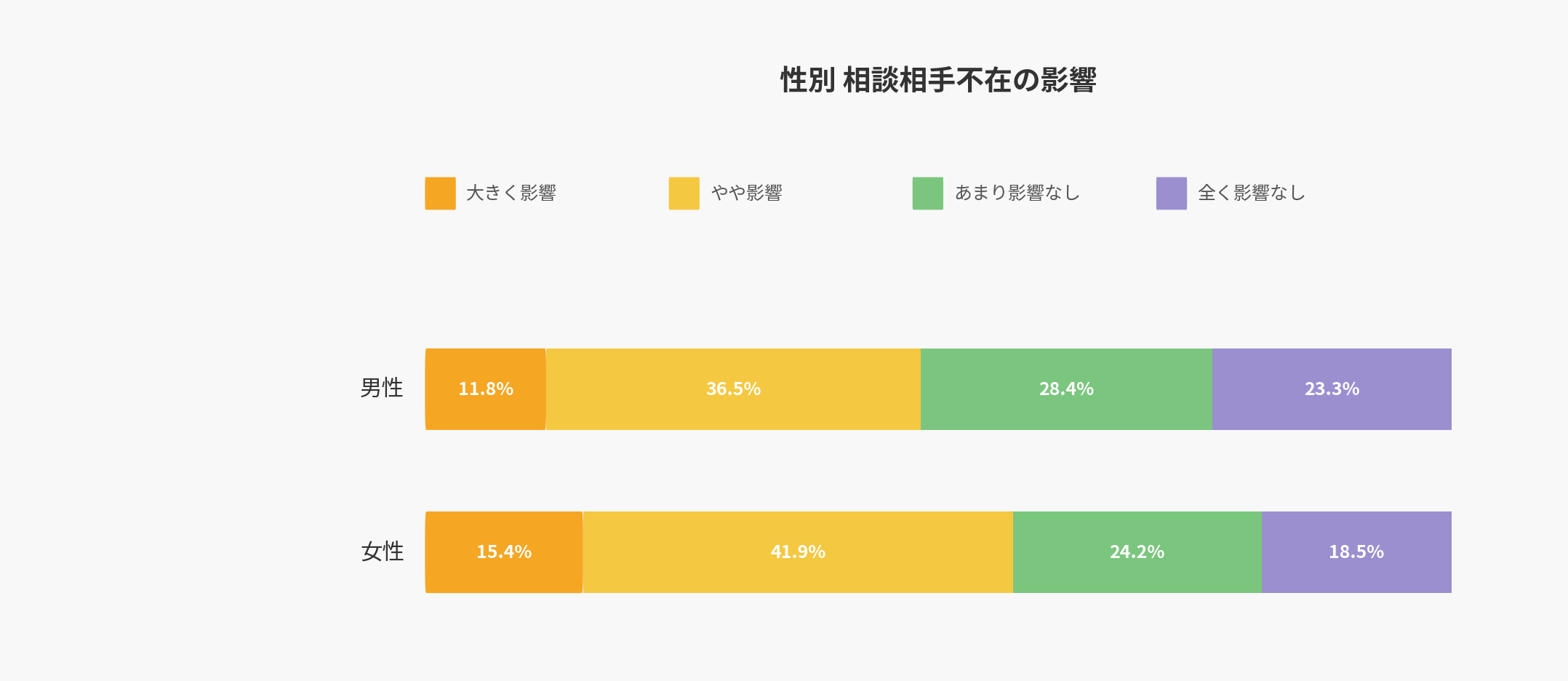 年代別に影響度を見ると、若年層ほど相談相手がいないことによる影響を強く受けている傾向が顕著に現れました。