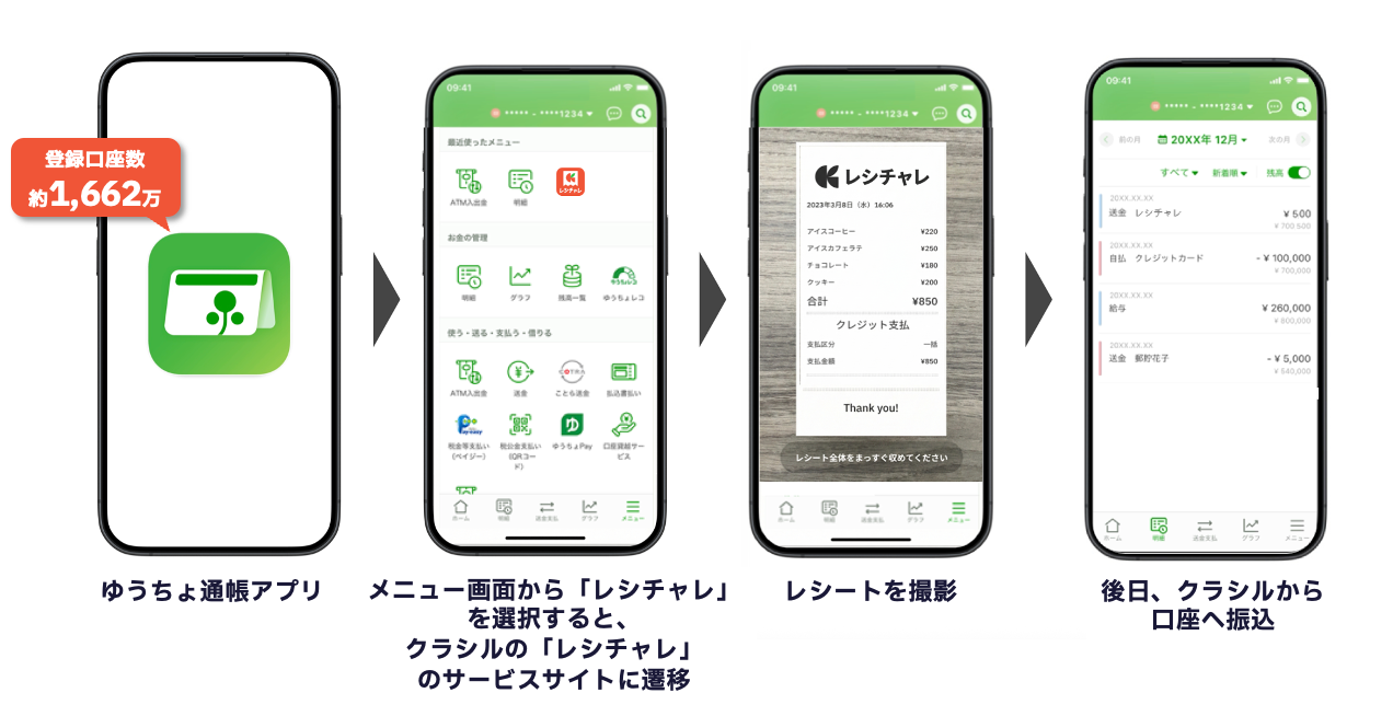 クラシル株式会社(本社:東京都港区、代表取締役社長:堀江 裕介、以下「クラシル」)と株式会社ゆうちょ銀行(本社:東京都千代田区、取締役兼代表執行役社長:笠間 貴之、以下「ゆうちょ銀行」)は、2026年9月(予定)より、クラシルが提供する節約アプリ「レシチャレ」と、ゆうちょ銀行が提供する「ゆうちょ通帳アプリ」との連携を開始いたします。