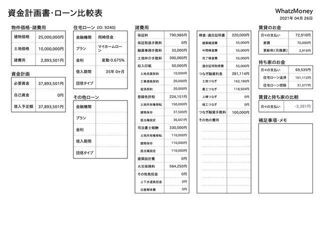 「工務店・ビルダー様とお客様に安心と幸せを提供するため住宅ローンのすべてをお手伝い致します」をビジョンに掲げるWhatzMoney株式会社(本社:東京都港区、代表取締役:前田一人、以下「WhatzMoney」)は、IT導入補助金対象ツールとして、資金計画書と住宅ローン比較表を瞬時に作成できる「資金計画書・ローン比較表作成システム」(以下「本システム」)の提供を開始したことをお知らせいたします。