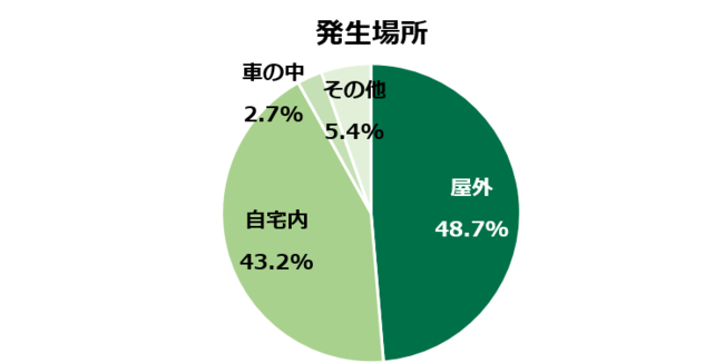 まず犬の熱中症の発生場所について聞いたところ、「屋外」が48.7%、「自宅内」が43.2%という結果になりました。熱中症というと炎天下の屋外で発生するイメージがあるかもしれませんが、屋外だけでなく自宅での熱中症にも十分注意する必要があることがわかります。