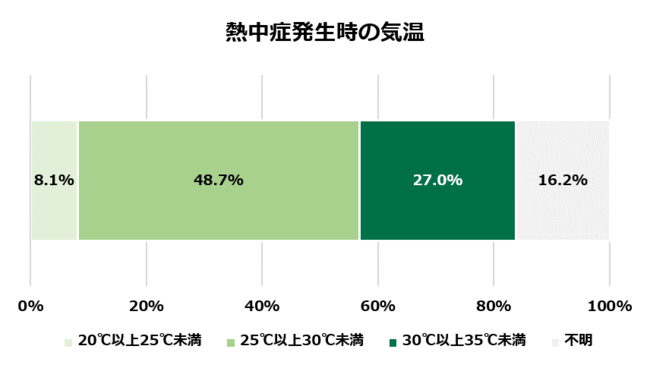 ■熱中症になったときの気温は、「25℃」以上が約8割