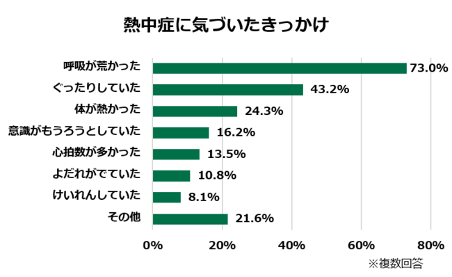 ■熱中症に気づいたきっかけは、「呼吸が荒かった」