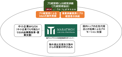 マラトンキャピタルは投資会社では国内最大の経営者プラットフォーム(日本プロ経営者協会)を運営し、数多くの中小企業の価値向上の為の後継者発掘支援、経営支援を行います。