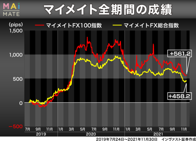 ■マイメイト全期間の成績 2021年11月30日時点 単位pips