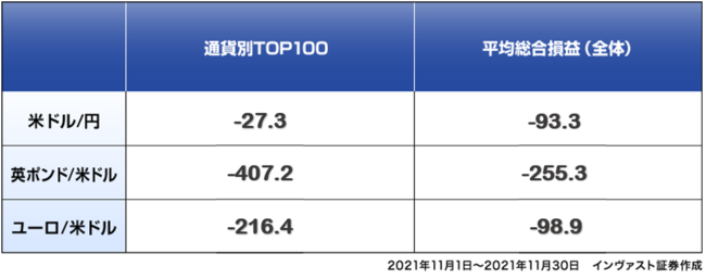 ■2021年11月 通貨ペア別平均損益