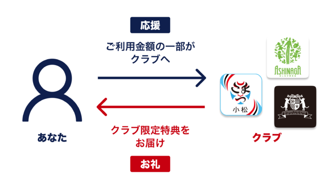 ソーシャルグッドとは、「社会に対し良いインパクトを与える」活動や製品・サービスなどを表す言葉です。Nudgeカードで普段のお買い物などでご利用いただくだけで、地域コミュニティや社会課題の解決に向けたクラブの活動の応援ができます。利用者は、応援のお返しとして、各クラブの限定特典がもらえます。