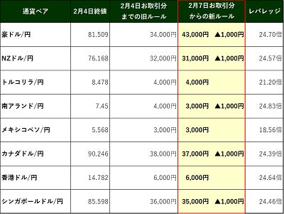 2022年2月7日(月)お取引分より、一部通貨ペアにおいて必要証拠金ルールを変更いたしました。