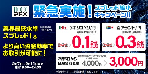 株式会社 マネーパートナーズ(代表取締役社長:福島秀治、本社:東京都港区、以下「当社」)では、「パートナーズFX」で業界最狭水準のスプレッド縮小キャンペーンを実施しております。