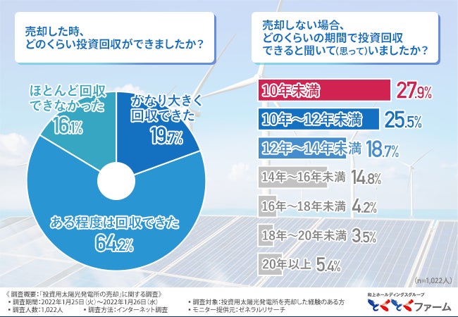 ここまでの調査で、太陽光発電投資について、売却を経験している8割以上の方が投資回収できていたことが分かりました。