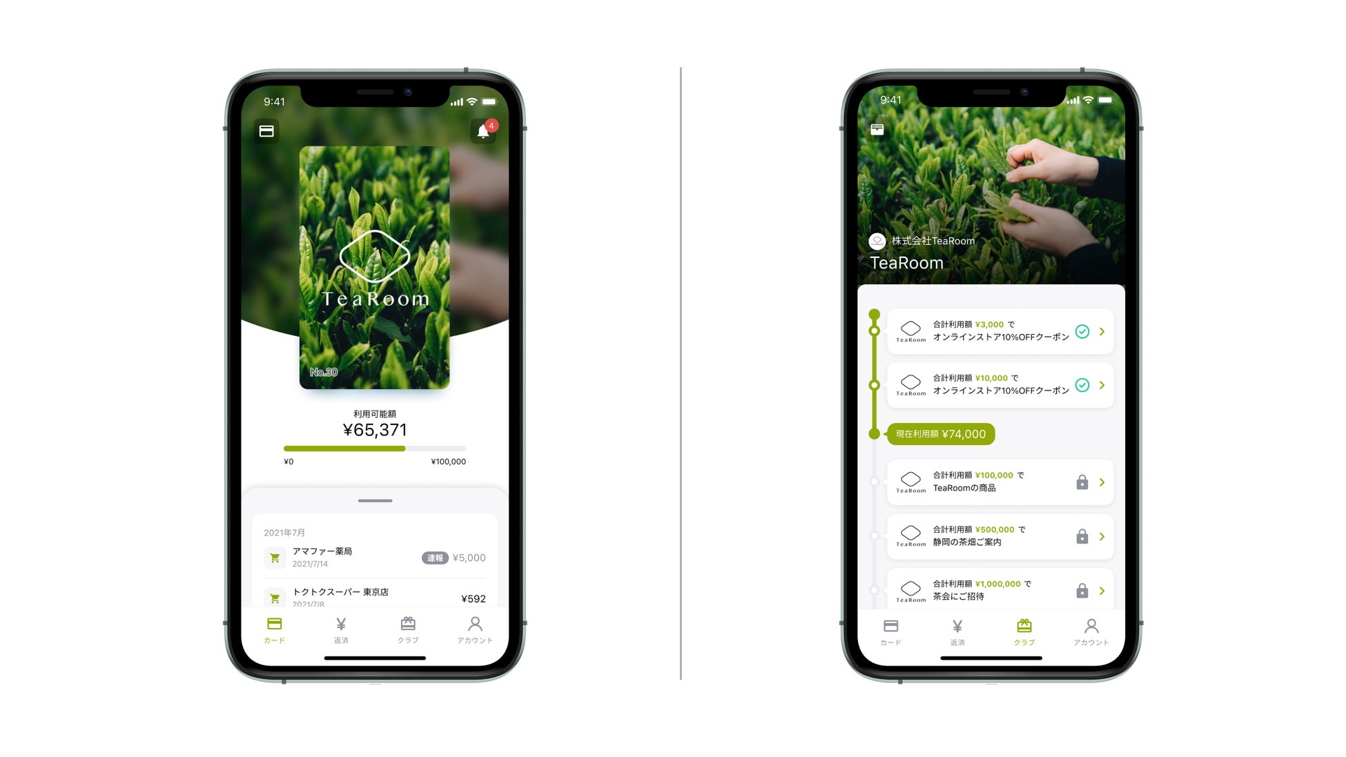 普段のお買い物などでNudgeカードをご利用いただくと、ご利用金額の一部が「TeaRoom」の支援につながります。クラブユーザー様は、ご利用金額に応じて、株式会社TeaRoomのオンラインクーポンや商品、静岡の茶畑ご案内や、茶会へのご招待などの特典をもらうことができます。