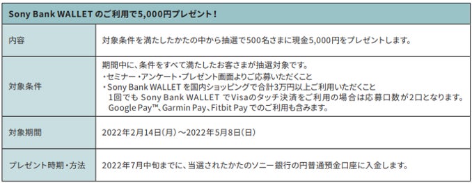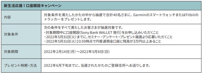 ソニー銀行株式会社(代表取締役社長:南 啓二/本社:東京都千代田区/以下 ソニー銀行)は、2022年2月14日(月)より、ふたつのキャンペーンを実施しますのでお知らせいたします。
