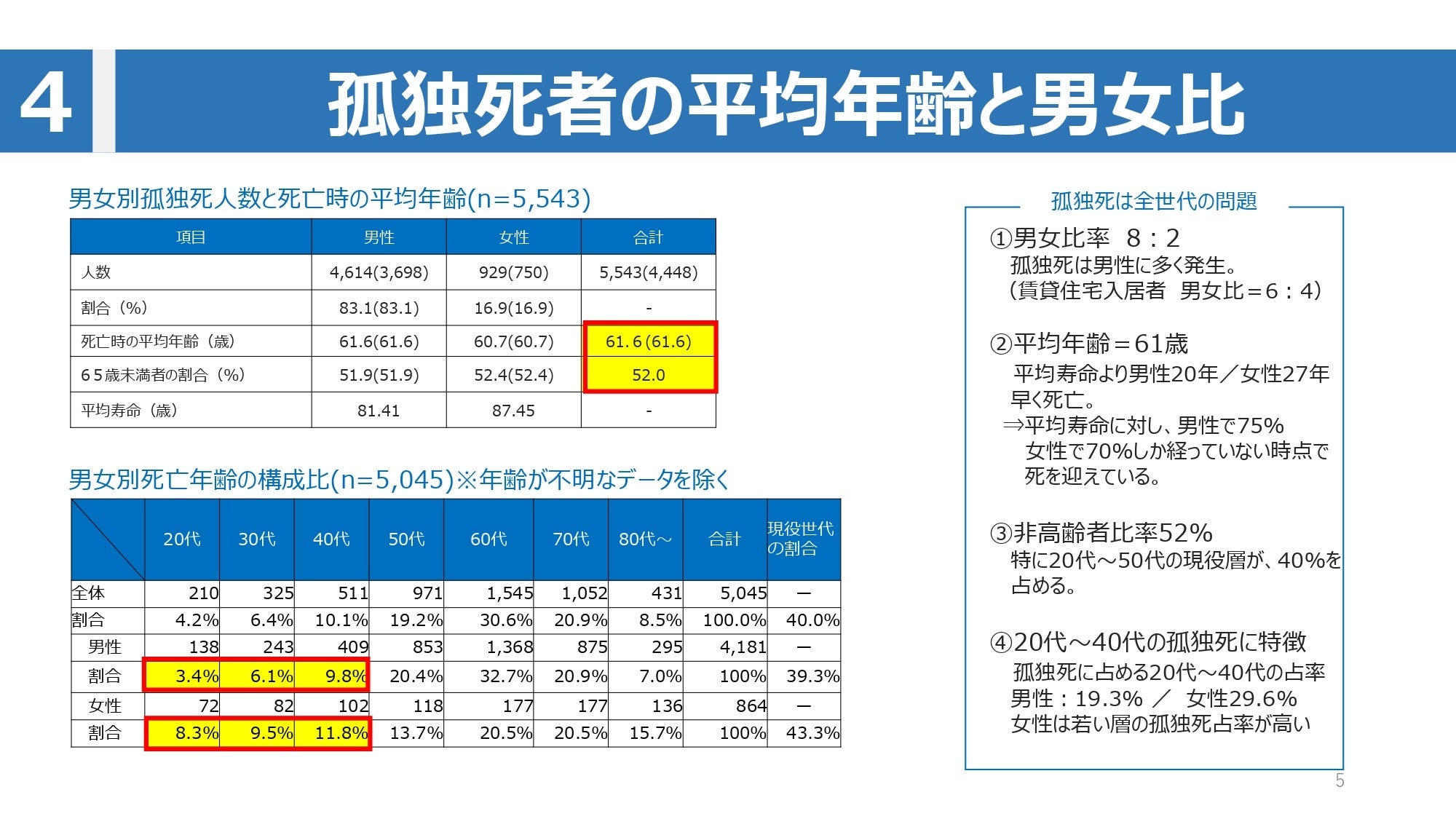 5000人以上の孤独死データを分析した孤独死現状レポートの報告を行いました。レポートでは、若年層の