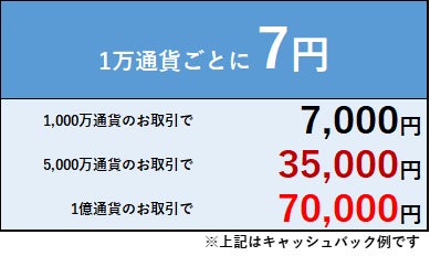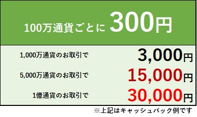 ※各日18:00~24:00の時間帯のお取引はキャッシュバック対象外となります。