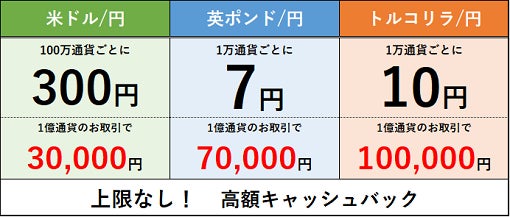 • 【トルコリラ/円】新規・決済どちらの注文も!1万通貨ごとに上限なしで10円キャッシュバック