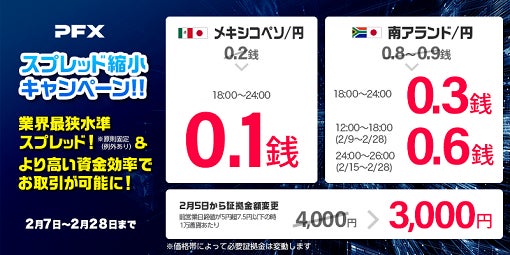 - パートナーズFX「メキシコペソ/円」「南アフリカランド/円」スプレッド縮小キャンペーン