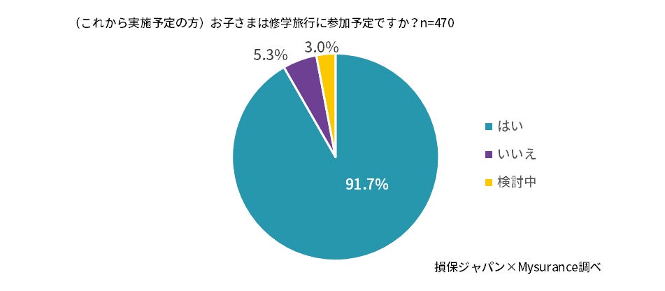 これから実施される修学旅行にお子さまが参加しない予定と回答したの5.3