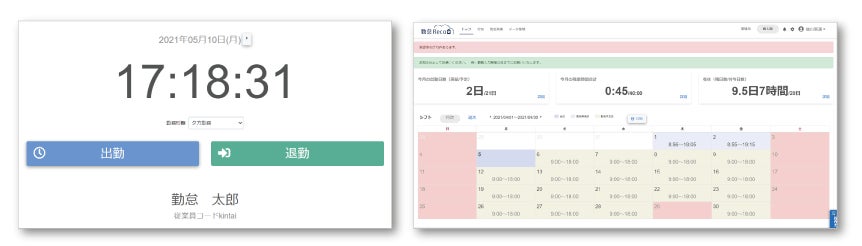 <「勤怠Reco」画面イメージ>