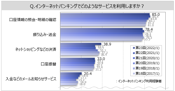 マイボイスコム株式会社(東京都千代田区、代表取締役社長:高井和久)は、インターネット調査を中心に提供している伊藤忠グループのリサーチ会社です。この度、23回目となる『インターネットバンキングの利用』に関するインターネット調査を2022年1月1日~5日に実施し、10,171件の回答を集めました。調査結果をお知らせします。