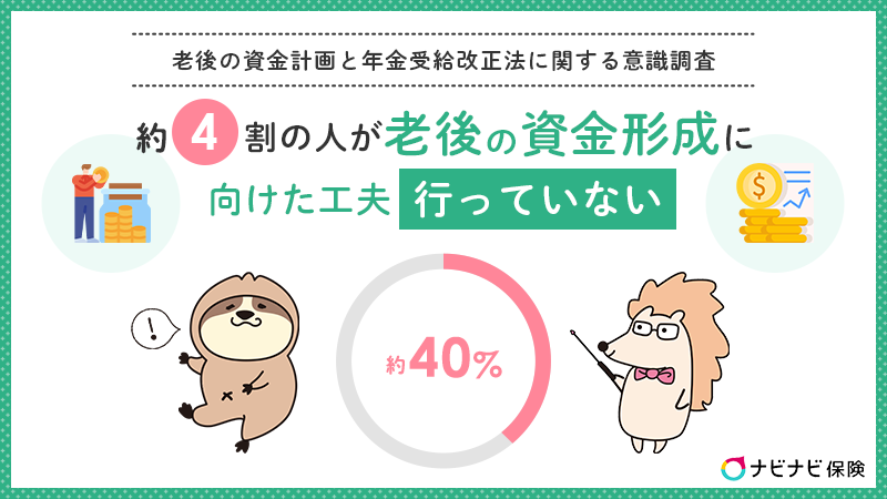 老後資金については、漠然と年金だけでは足りないという意識を持つ人が多いものの、約4割の人は行動に移せていないということが分かりました。