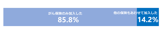 今回のがん保険加入に際して、「がん保険のみ加入した」方は85.8%、「他の保険もあわせて加入した」方は14.2%となりました。