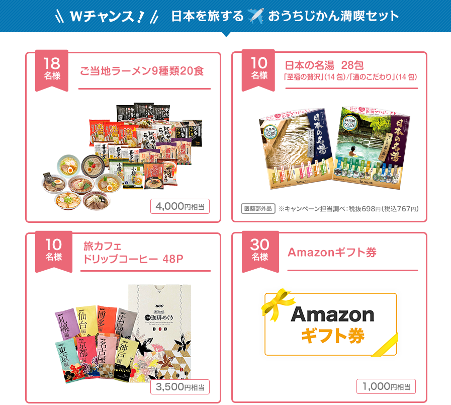 2)Wチャンス「おうち時間満喫セット」:68名様