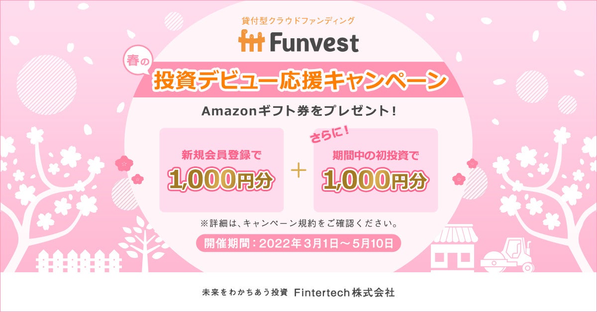 お客様の投資デビューを応援するため、キャンペーン期間中の会員登録・初投資でAmazonギフト券をプレゼントする、お得なキャンペーンを実施いたします!